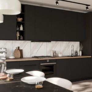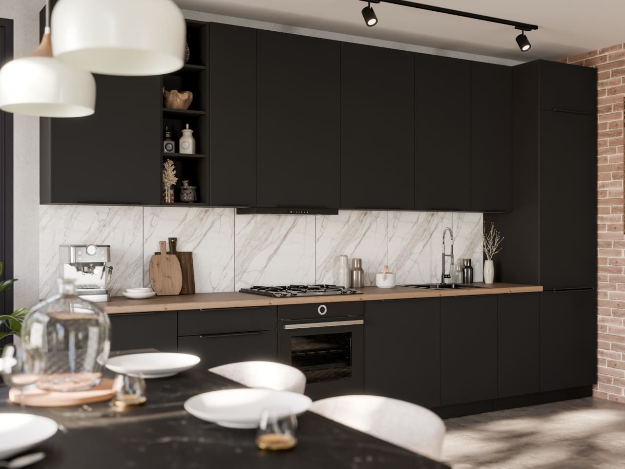 • Černé matné provedení: neutrální tón, který lze kombinovat s různými dekory kuchyní.