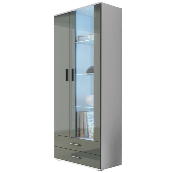 Vitrína BRNO SH7F bílá / šedý lesk