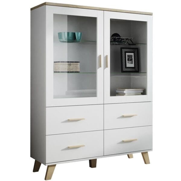 SKU: LOTTA Witryna 120 biel brylantowa / dąb sonoma