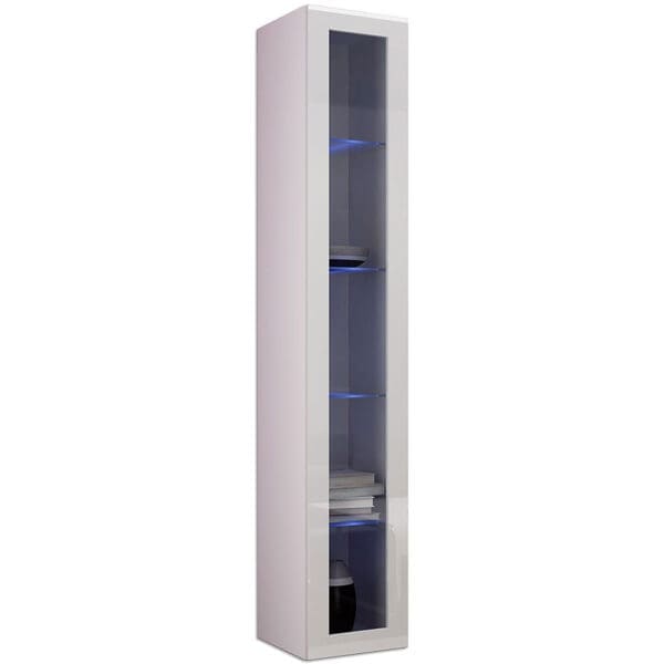 Vertikální vitrína plná GOVI VG2A bílá / bílý lesk